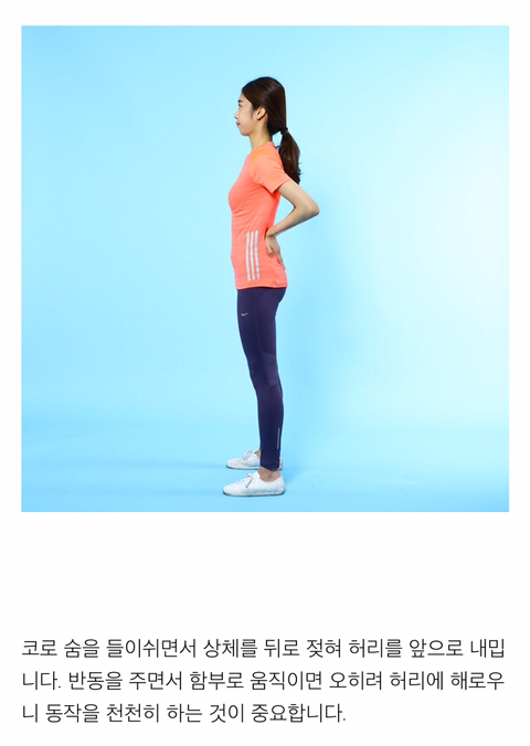 서서하는 맥켄지 신전(허리) 운동 - 30분 간격 권장